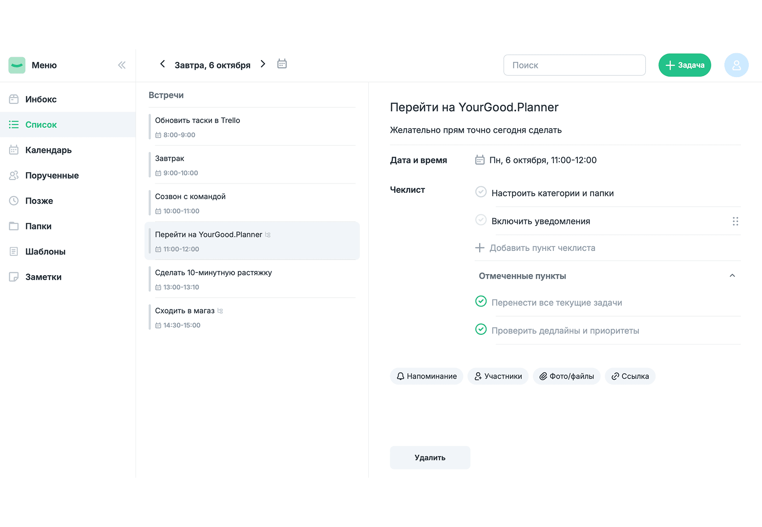 - Все задачи, заметки, встречи и поручения — в одном месте