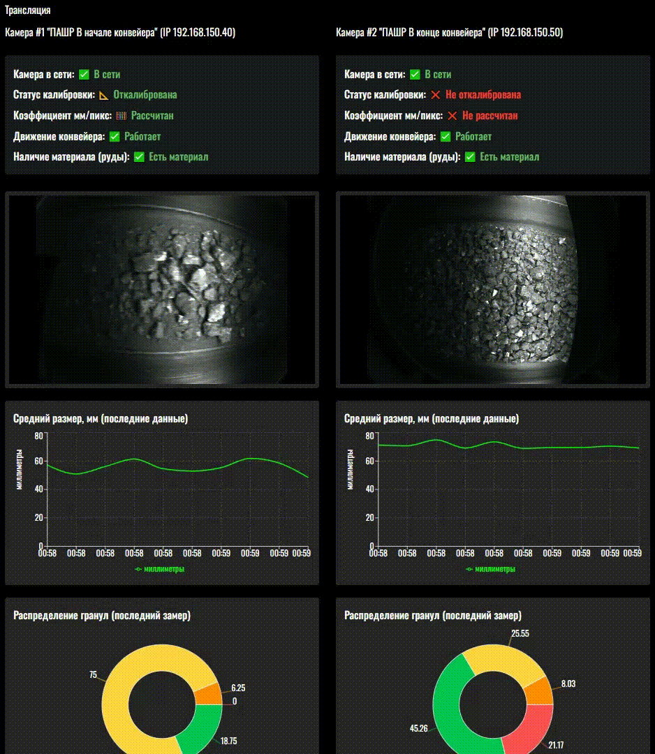 - Анализ гранулометрического состава руды (анализ размера и поиск негарабарита, инородных тел и примесей) для корректировки режима работы дробилки.