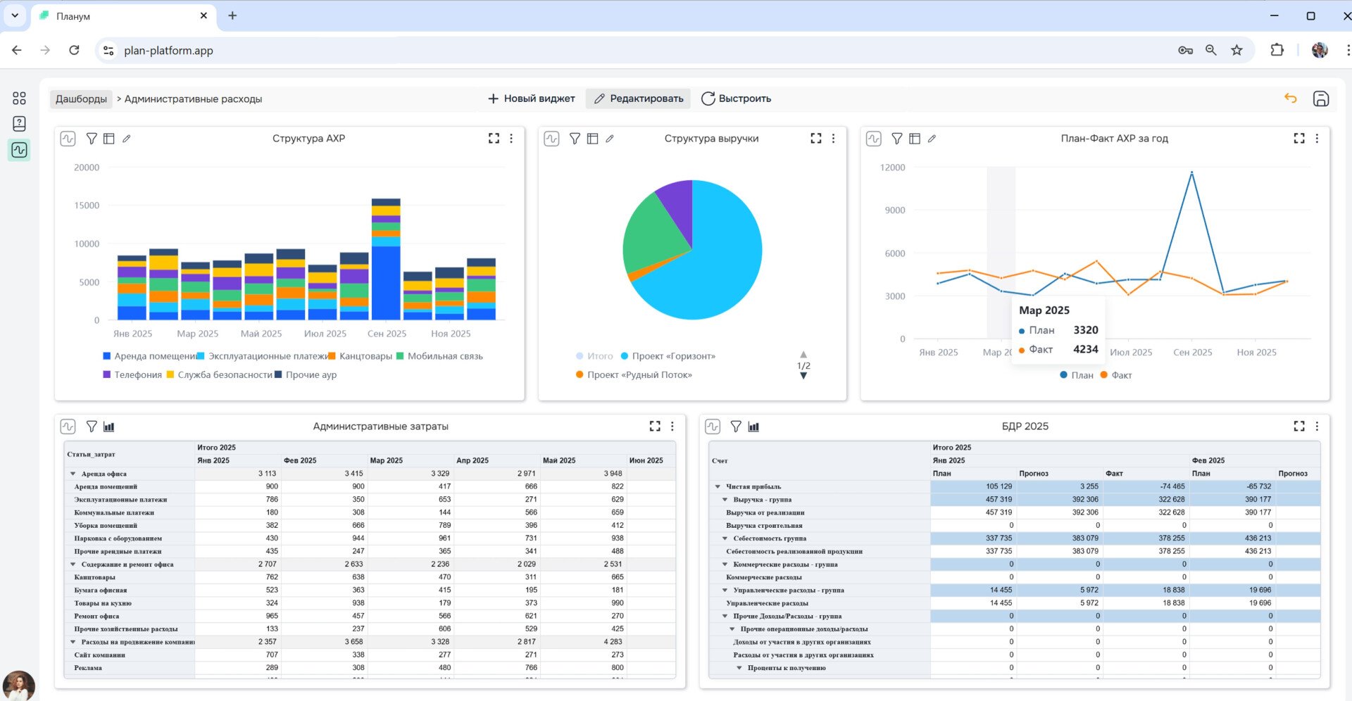 и бюджетирования. Платформа объединяет нефинансовые и финансовые показатели компании для точного планирования и аналитики.