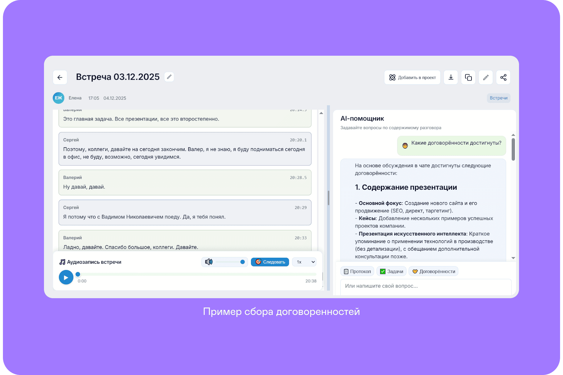 Скриншоты «AI-транскрибатор RiverSpeech для протоколирования встреч и созвонов»