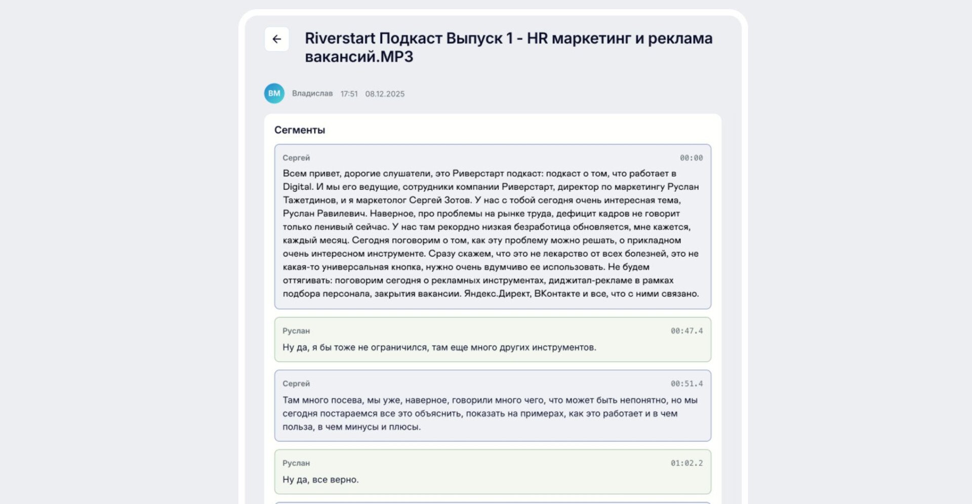 Скриншот AI-транскрибатор RiverSpeech  для протоколирования встреч и созвонов картинка 4